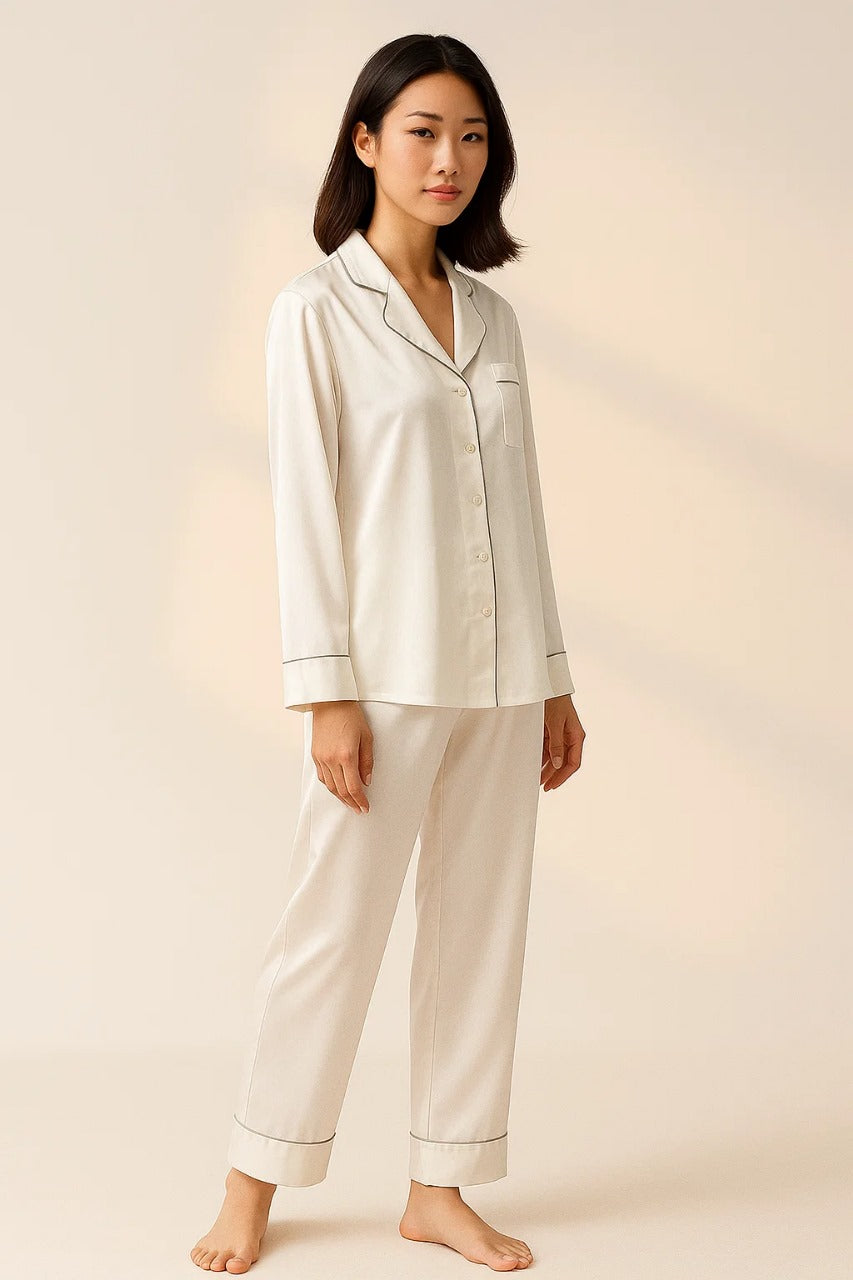 Silk Night Suit with Scrunchie – Pearl by MID NIGHT BLUSH